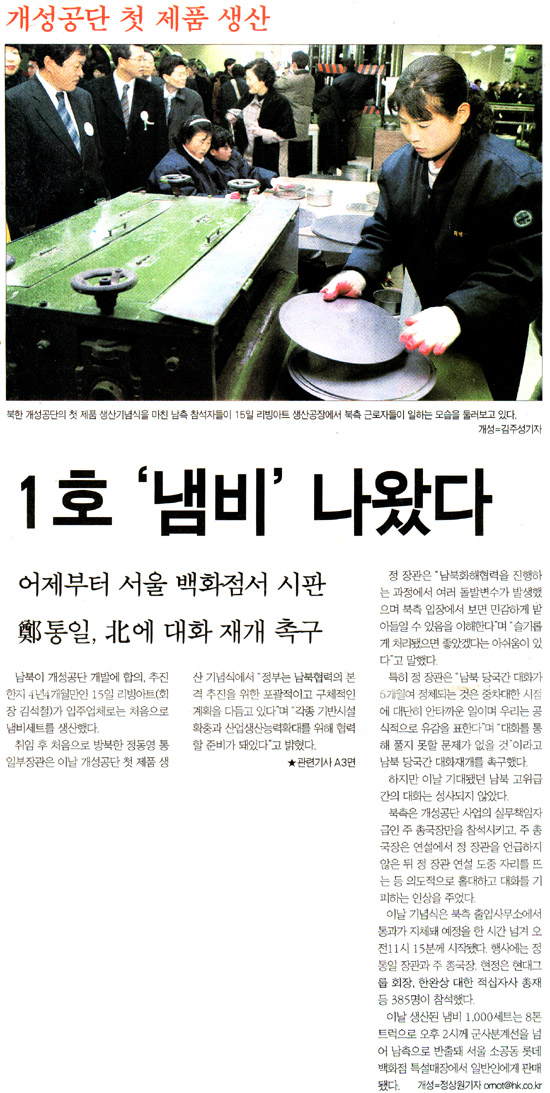개성공단 첫 제품 생산, 1호 냄비 나왔다